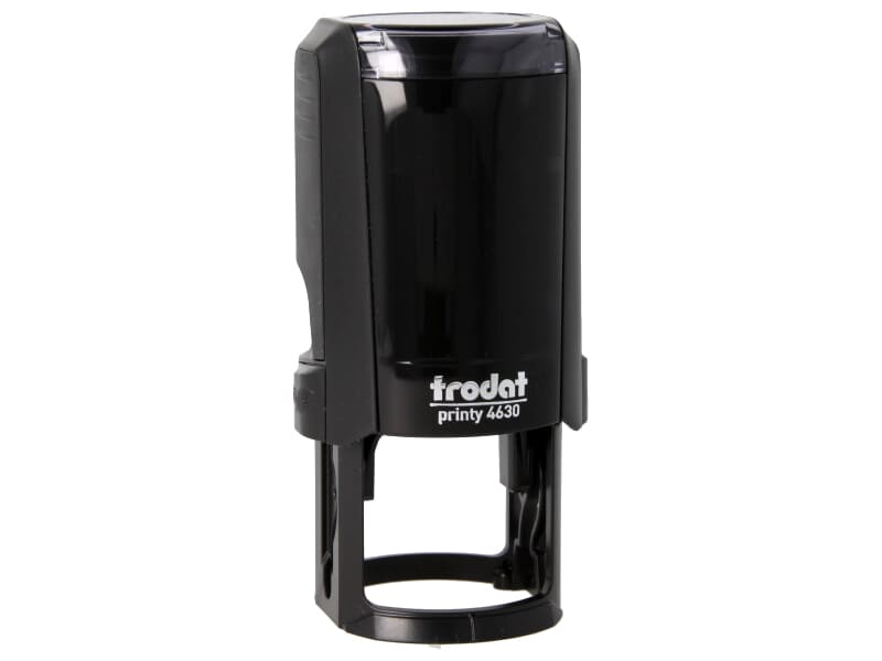 Der Trodat Printy 4630 mit einer runden Abdruckfläche von ∅ 30 mm und einer empfohlenen Zeilenanzahl von 6 Zeilen lässt sich hervorragend mit unserem Stempeldesigner gestalten. Ob Namens- oder Adress-Stempel, die Printy Line bietet für jede Anwendung das passende Produkt. Das integrierte Stempelkissen trocknet nicht aus und kann, dank zwei speziellen Griffzonen, ohne Berühren des Farbspeichers, einfach und sauber ausgetauscht werden. Der Trodat Printy ist einer der kleinsten und leichtesten Selbstfärbestempel der Welt. Soft-touch-Elemente garantieren ein angenehmes und sicheres Halten des Stempels. Die neueste Printygeneration verfügt über ein glasklares Panoramasichtfenster, welches einen exakt platzierten Abdruck ermöglicht. Die transparenten Bodenkanten erlauben ein präzises Ausrichten am Dokument.