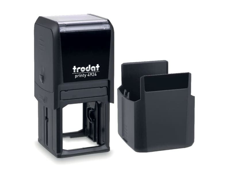 Der Trodat Printy 4924 mit einer Abdruckfläche von 40 x 40 mm lässt sich hervorragend mit unserem Stempeldesigner gestalten. Ob Namens- oder Adress-Stempel, die Printy Line bietet für jede Anwendung das passende Produkt. Der Original Trodat Printy 4.0 ist klimaneutral und das serienmäßig. Das integrierte Stempelkissen trocknet nicht aus und kann, dank zwei speziellen Griffzonen, ohne Berühren des Farbspeichers, einfach und sauber ausgetauscht werden. Der Trodat Printy ist einer der kleinsten und leichtesten Selbstfärbestempel der Welt. Soft-touch-Elemente garantieren ein angenehmes und sicheres Halten des Stempels. Die neueste Printygeneration verfügt über ein glasklares Panoramasichtfenster, welches einen exakt platzierten Abdruck ermöglicht. Die transparenten Bodenkanten erlauben ein präzises Ausrichten am Dokument.